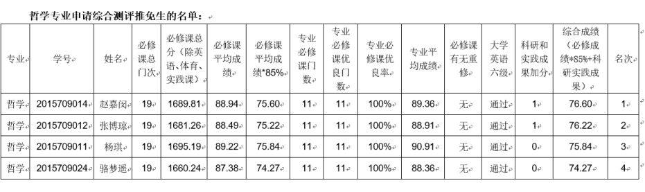 根据36365最新线路检测《关于做好2019年推荐优秀应届本科毕业生免试攻读硕士学位研究生工作的通知》的相关要求和程序,36365官网经过学生本人自愿申请、提交材料、同专业提交申请的同学互相计算成绩、学院教学科研办公室成绩复核以及学院推免工作领导小组审核等程序,在所有提交申请的同学亲自签字确认本人及本专业同学成绩无误的前提下,确定36365最新线路检测2015级本科生申请综合测评推免的名单公示,如下: