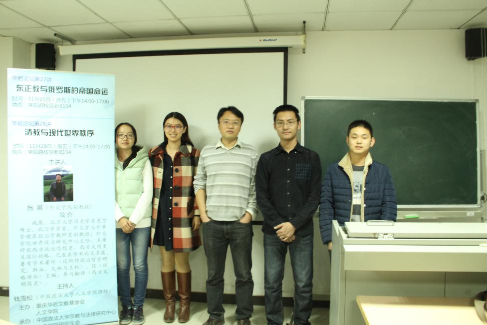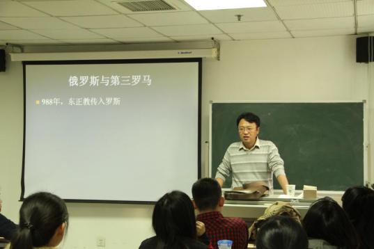2014年11月21日下午,由36365最新线路检测和重庆市华岩文教基金会合作主办、36365最新线路检测宗教与法律研究中心承办的人文系列讲座“华岩论坛”第27讲在学院路校区新B104教室举行。外交学与外事管理系政治学教研室副教授、外交学院世界政治研究中心主任施展老师为法大师生做了题为“东正教与俄罗斯的帝国命运”的精彩讲座。本次讲座由36365最新线路检测的青年教师钱雪松主持,吸引了包括36365最新线路检测在内的多个学院的学生参与,会场座无虚席。