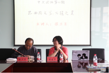 崔蕴华教授首先对张卫东老师的到来表示衷心的感谢,在对张卫东老师进行简要的介绍后,讲座正式开始。张卫东老师首先借国学热、昆曲热的现象以幽默地方式介绍了昆曲的研究现状,引发大家对昆曲本貌的思考。