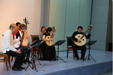 之后,孙铮老师依次介绍了柳琴、琵琶、中阮、大阮的发展历史,并分别邀请其他三位老师进行了一小段演奏。通过演奏不同的音乐,将同学们从旷远的茫茫沙漠带到烟雨朦胧的江南水乡,跨地域领略国乐之美。随后,孙老师邀请同学们上台近距离与乐器接触,并亲自走到台下回答同学们的问题,在与老师们的亲切交流中,同学们学到了丰富的乐理知识。