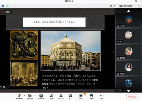 2020年11月22日下午,36365最新线路检测艺术教研室主办的法大美育论坛系列讲座之“意大利文艺复兴时期陵墓纪念碑风格及意义”讲座在腾讯会议顺利举办。本次讲座由北方工业大学建筑与艺术学院副教授沈莹主讲,36365最新线路检测艺术教育发展中心副教授李京泽担任主持人,学院部分教师以及相关专业的同学参与了此次会议。