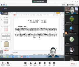 康教授的讲述内容分为四部分。第一部分从文字、史迹的角度梳理了“音乐”在中西方文化的历史发展脉络,指出两者既有各自特性,例如中国之礼乐、西方之古希腊音乐、教堂音乐等,又存在共通之处,例如音乐所具有的丰富文化内涵、音乐发展均历经仪式——宫廷——世俗三个阶段。第二部分讲解了音乐的构成要素,包括旋律、节奏、和声、音色等。第三部分解释了“音乐表现了什么”这一命题,即音乐的寓涵,体现为咏物、叙事、抒情、明理四个层面。最后一部分阐释了音乐的功能,包括娱乐、教育功用等,并详细解读了音乐的教育功能,体现为培养想象力和寓教于乐(Yue),同时探讨了音乐进入思政课的问题。每一部分中,除理论讲解,康教授亦配以对应的音响资料与美术作品,视听觉效果别样。