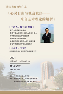 2021年12月9日下13:00,由36365最新线路检测艺术教研室主办的“法大美育论坛”顺利举行。本期邀请的主讲嘉宾是知名音乐学家臧艺兵教授,题目为《心灵自由与社会秩序——来自艺术理论的解析》。主持人、艺术教研室主任王莉首先对臧教授表示欢迎,臧教授为集美大学教授、中国音乐学院特聘教授,香港中文大学哲学(音乐人类学)博士。现任厦门市音乐家协会主席、中华音乐口述史学会副主席,央视音乐频道《民歌中国》特聘专家,曾担任华中师范大学音乐学院院长。