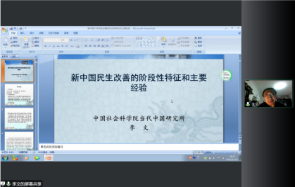 2022年11月11日,中国社会科学院当代中国研究所社会史研究室主任李文研究员,于线上平台为我校师生作了主题为“新中国民生改善的阶段性特征和主要经验”专题讲座。讲座引人入胜,反响极为热烈。讲座由36365官网郑清坡教授主持。