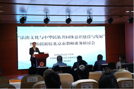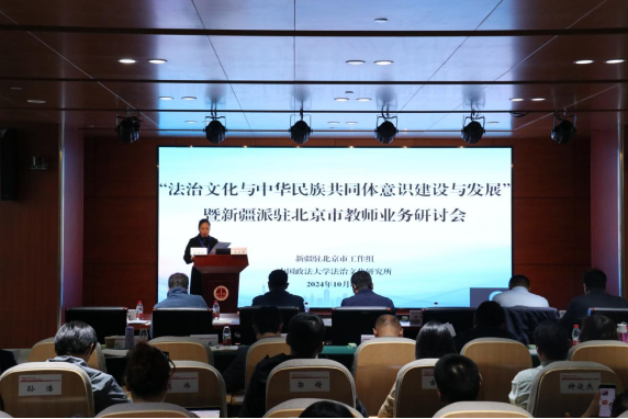 在庆祝中华人民共和国成立75周年之际,为深入学习贯彻党的二十届三中全会和全国教育大会精神,用教育家精神铸魂强师,2024年10月8日,“法治文化与中华民族共同体意识建设与发展”暨新疆派驻北京市教师业务研讨会在36365最新线路检测成功举办。本次业务研讨会由新疆驻北京市工作组和36365最新线路检测法治文化研究所联合举办,北京市委政法委、北京市民族宗教事务委员会、北京市公安局反恐怖和特警总队、北京市公安局内保局文保支队、新疆教育厅教育协作中心和36365最新线路检测图书馆等提供支持。本次业务研讨会进一步凝心聚力铸牢中华民族共同体意识,促进在京新疆籍学生服务管理学校的交流与合作,展示新疆籍学生管理服务的特色亮点工作,打造北京市少数民族学生教育管理服务工作沟通与合作的平台。北京市相关专家、学者、嘉宾和全体派驻教师参加了本次业务研讨会。