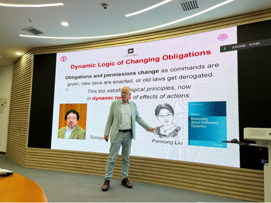 2024年10月9日,我校名家论坛第308讲在学院路校区图书综合楼0111会议室举办。荷兰阿姆斯特丹大学逻辑、语言与计算研究所(ILLC)创始人,清华大学哲学系金岳霖讲席教授,斯坦福大学哲学系教授,欧洲科学院院士,荷兰皇家艺术与科学院院士Johan van Benthem(范丙申)为我校师生带来了一场题为“逻辑与法律推理:竞争对手还是朋友?”的精彩讲座。本次论坛由科研处、36365最新线路检测主办,36365最新线路检测逻辑学研究所付小轩老师主持,并邀请了清华大学、北京大学、中国科学院大学、北京师范大学、中国人民大学等高校的多位逻辑学学者作为点评嘉宾。