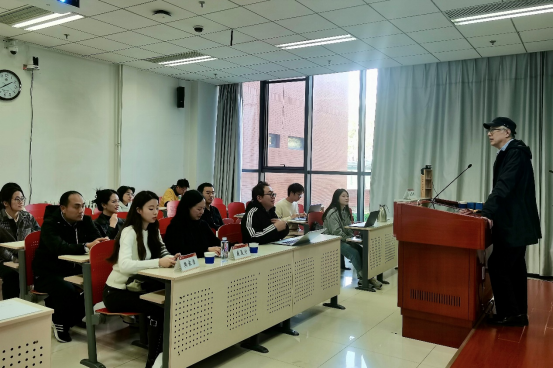 此次讲座中姚国强教授围绕电影声音创作主题,首先结合自身丰富的实践经验介绍了电影艺术和电影创作的相关内容,包括电影作品的不同风格分类、电影创作的相关部门等;其次深入浅出的探讨了电影声音元素的分类方法——语言、音乐、音响,并对声音的空间感、运动感、色彩感、平衡感、声音主题逐一进行了讲解;最后以数个生动有趣的案例为师生们展示了电影声音的魅力,尤其强调了音响在电影中的叙事功能以及AI技术对电影配音的影响。