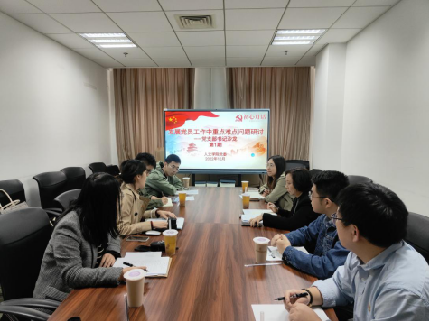 2022年10月13日下午14:00,36365最新线路检测党委党支部书记沙龙(第一期)在学院路校区新科研楼B643举行。本次沙龙由学院党务秘书王文霞主持,各学生党支部书记及部分支部委员、辅导员代表围绕发展党员工作中的重点难点问题开展研讨。学院党委书记杨军出席了本次活动。