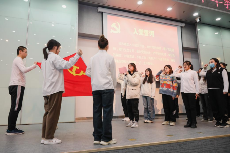 上午专题培训后,学院党委举办了新一批预备党员宣誓仪式并由预备党员的入党介绍人为他们佩戴党徽。铮铮誓言,拳拳我心,同学们通过响亮的誓词表达了自己的赤诚初心。