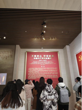 在展览馆内,大家跟随讲解员的脚步,认真聆听每一个党史故事,仔细观看每一件珍贵展品。百年来,中国共产党矢志不渝,奋勇前行,充分展现了一个伟大政党的历史责任感与担当精神。今日,再度回溯这漫长而光辉的百年征途,能够深切体会革命先辈们的艰辛奋斗与坚定信念。这不仅是一次对党的辉煌历史的深情回望,更是一场心灵的洗礼与精神的磨砺。在参观过程中,大家被党的奋斗精神和伟大成就所深深打动。同学们纷纷表示,通过实地参观学习,更加深刻地认识到了党的初心和使命,也更加坚定了自己的信仰和追求。同时,也表示将以此次参观学习为契机,进一步加强党性修养,不断提高自己的思想政治素质和业务能力,为党和人民的事业贡献自己的力量。