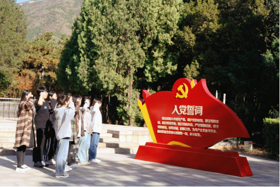 老一辈建设者的风采仍然鲜活灵动,新一代建设者已经踏上征程。参观纪念馆后,面向十三陵水库建库革命纪念碑,支部16名新发展的预备党员进行庄严的入党宣誓。在领誓人陈曦的带领下,大家面对党旗举起右拳,庄严宣誓。入党誓词彰显了中国共产党人的责任与担当,凸显了中国共产党人不懈的精神追求和政治信仰。本次宣誓活动给新加入中国共产党的同学们带来了思想的洗礼,凝聚了磅礴的精神力量。