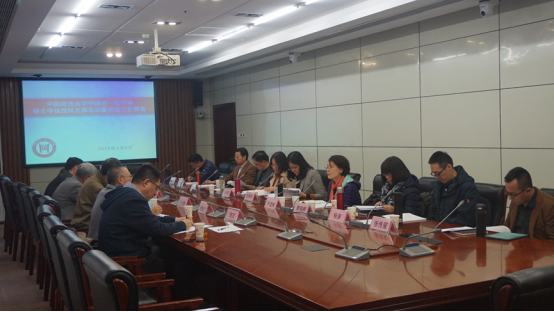 会议伊始,赵晓华老师介绍了与会专家,并向专家说明了学校相关工作的进度和要求。李雪梅老师向专家介绍了法律古籍整理研究所的基本情况及在本轮评估时段中开展的工作。邓庆平老师向与会专家汇报了本校中国史一级学科学位授权点教育质量评估工作的相关情况,内容包括36365最新线路检测中国史学科硕士学位授权点的专业设置情况、评估报告的基本内容、评估工作的开展情况、中国史学科下一步的建设规划。