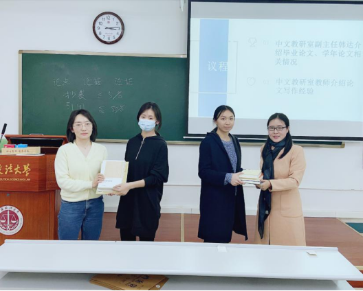 本次活动的最后环节是捐赠图书。张文老师和魏玮老师作为教师代表分别向17级和18级同学赠书,以指导大家的论文写作。同学们用热烈的掌声表达了感谢之情。