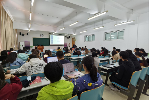 第二项是中文教研室各专业老师们分享论文指导经验。赵文彤老师首先提到学院一直以来对于学年论文和毕业论文都十分重视,同时也点出了一些同学们在写作时容易出现的问题。邹玉华老师肯定了这次活动的意义,进一步讲到了选题要由小题目入手,应收集目前讨论问题中还未解决未论证的点。其次是从语言学的角度,谈到运用材料、语料的必要。崔玉珍老师告诫同学们要打开自己的视野,寻找“梯子和砖”来绕过眼前暂时的障碍,可以通过论坛、座谈会等渠道了解别人的研究成果,以启发自我。其次,讲到要尝试抛掉自己的主观想法,不要先入为主,陷入原来的固定的思维中。卢燕娟老师列举了同学们写作中常见的问题,说到要区分研究领域和研究问题两个概念,注意论文结构,要准确辨析术语的概念,认识到其内涵以及外延。宋庆宝老师紧接着也讲了问题意识,谈到了课程论文、学年论文和毕业论文的相互关系。张彦老师从共性和个性的角度选择了文献这一点来讲述,督促同学们去阅读当下研究成果,选择自己可以尝试的方向,同时也要注意材料的选择和运用。徐文贵老师提出同学们要尽量选择自己感兴趣的写作题目,也要积极接受老师的意见,学习师兄师姐写作中的吃苦耐劳、坚持不懈的态度。张文老师强调了写作态度的重要性,希望同学们要多与老师沟通,另外要合理安排写作时间,制定完整的写作计划。熊忭老师提到这次论文是开始研究的一次契机,有着学术的意义,对习惯养成有着很大的帮助。谢丹凌老师提醒同学们,和老师的沟通要落实到实处,有效的沟通能够避免后期写作中可能出现的种种问题。刘洋老师根据今年鲲鹏论文比赛提出了选题、论证和论据的一些问题。张悦老师从“别人做了些什么”、“别人做得对不对”和“我还能做些什么”三句话来引入写作中的注意事项。最后,老师们共同预祝同学们写作顺利。