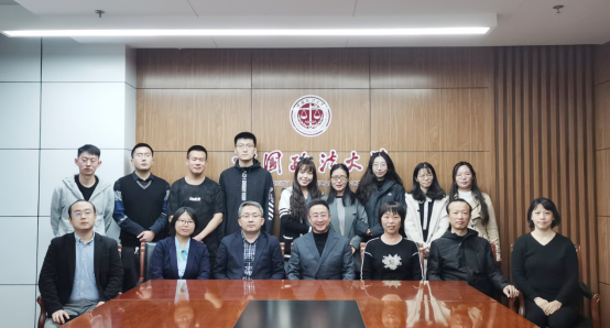 最后,沈腾主任一行与学院领导及法治文化专业师生代表合影留念。临近下午17:30沈腾主任捐赠仪式圆满结束。期待双方未来能有更多的交流与合作!