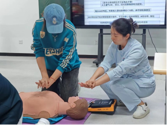 在校医院吕欣医生和景雪医生的指导下,同学们不仅详细了解了心肺复苏(CPR)的具体操作流程,还学习了自动体外除颤器(AED)的正确使用方法。两位医生首先通过模拟人演示了如何正确实施胸外按压、开放气道以及人工呼吸等关键步骤,并逐一强调了每个动作的技术要点,比如按压的频率、深度以及吹气的力度和节奏等。随后,他们向大家展示了AED的使用步骤,包括开启设备、贴附电极片、遵循语音指令等,并特别指出在使用过程中需确保周围环境安全及遵循设备的语音提示操作。在理论讲解之后,吕欣医生和景雪医生还亲自监督并指导同学们进行了实际操作练习,确保每位参与者都能熟练掌握这些救命技能。
