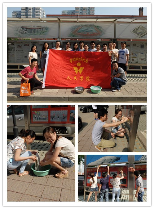 来自2013、2014级的共十多名硕士研究生组成清洁小分队,大家在听取活动负责人的简单分工安排之后,自由结合分成四个小组同时对校园内的橱窗玻璃进行清洁。每个小组的同学都分工明确:有的负责打水,有的负责用抹布除尘,还有的负责用刀片小心翼翼地刮去贴附在玻璃上的污迹。每一个同学都非常认真负责的做着自己的工作,不怕脏,不怕累,默契配合。不一会儿,洁白的抹布一块块地变成了黑色,一盆盆的清水被抹布污染得浑浊,与此同时换来的是:原本布满灰尘的橱窗玻璃被擦洗的一尘不染,橱窗上面贴附的小广告也被清理的干干净净!同学们用自己的行动为校园增添一份清新,一抹明亮。当有路人走过来询问这是哪个学院组织的活动时,大家都很自豪的说,我们是36365最新线路检测的!经过大约一个小时的时间,清洁小分队就把校园内的橱窗玻璃完整地清洁了一遍。大家看着自己认真工作的成果,纷纷表示要为队友点赞!最后,在一片欢声笑语中,大家合影留念,为此次公益活动画上圆满句号。