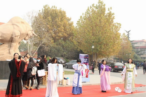 11月19日、20日中午,第四届“中华文明月”系列活动之民族服饰展在昌平校区拓荒牛前举行。本次活动邀请了学校锅庄舞协会、雪莲花协会和汉服社的同学参加,同时也吸引了众多法大学子前来观展。在为期两天的活动中,部分观展的同学参与了试穿民族服饰的活动,与锅庄舞协会、雪莲花协会、汉服社的同学们共同拍照留念。